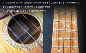 Martin社のエンプロイ(employee)モデルを参考にして制作されるソプラノウクレレ。