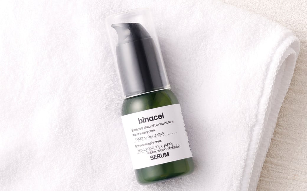 美容液"binacel serum"は、豊かな自然あふれる大分県豊後大野市の竹と、滝廉太郎の「荒城の月」でも知られる竹田市で湧き出る弱アルカリ性でミネラルが豊富な世界でも稀な温泉水を使った、